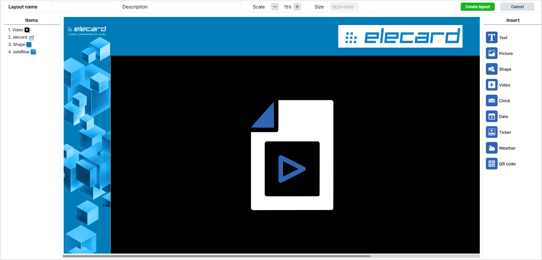 The Layout layer allows you to add layouts that will appear in parallel or on top of the media content playing in the background.
