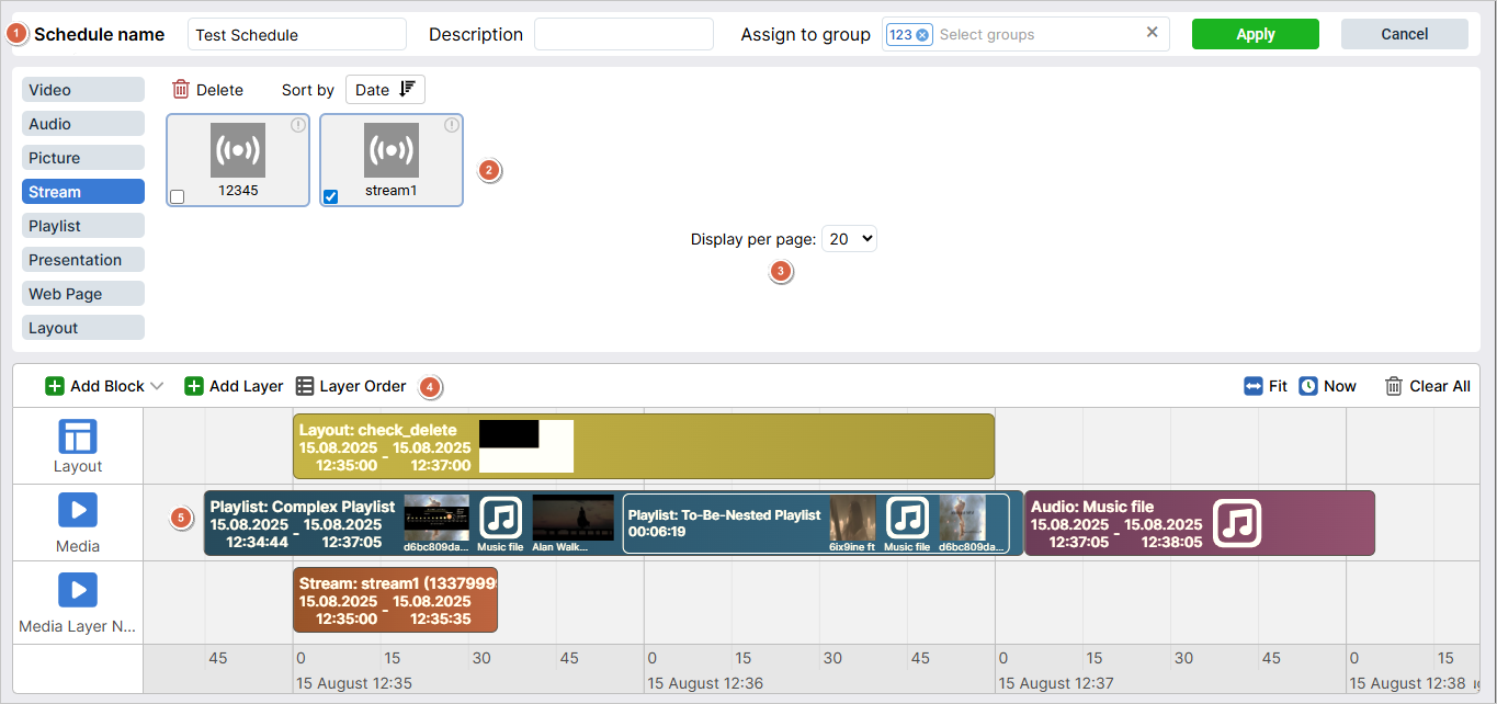 By default, each schedule comprises Media and Layout layers.