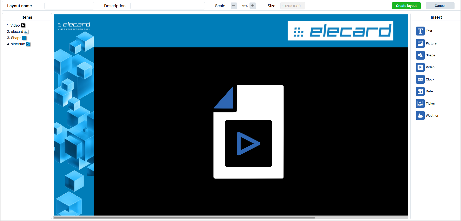 Working with layouts is supported by Ubuntu-based players’ version 1.4.2 and higher, as well as Android-based players of all versions.